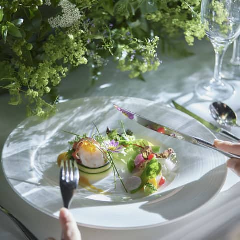 料理長が手がける人気メニューはもちろん、おふたりの想いを丁寧にくみ取りながら、フルオーダーのコースもご提案いたします。「おいしい」の一言が、笑顔に変わる瞬間を目指して、ホテルならではの上質なおもてなしで、特別な一日を彩ります。