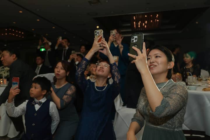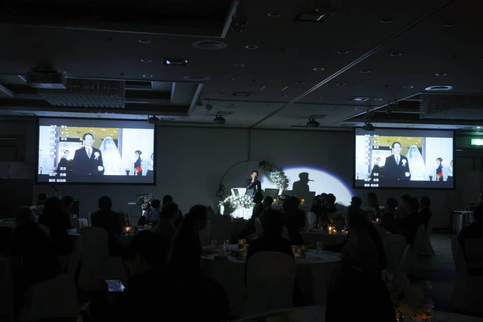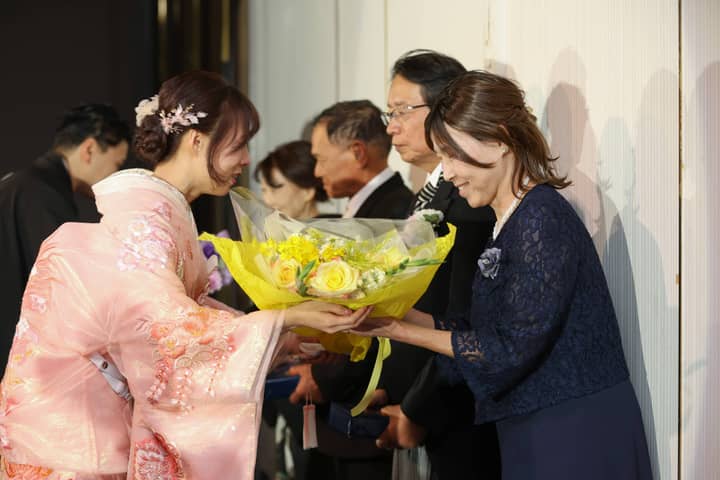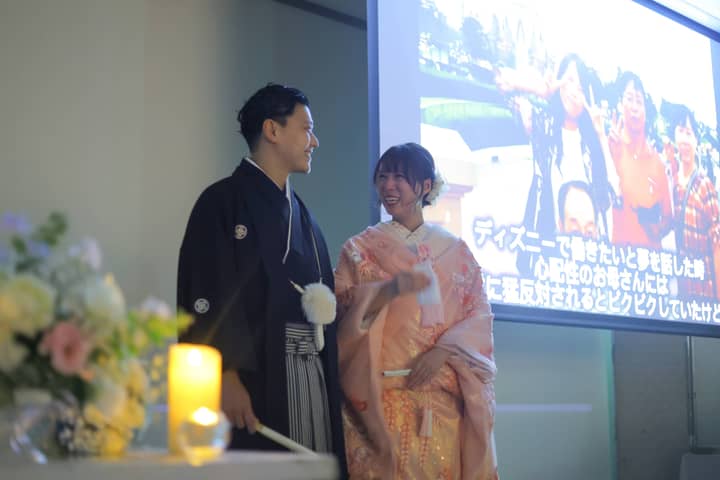 両親への感謝を込めたメッセージムービーが上映され、これまでの思い出が映し出されるたびに、会場には温かな涙が静かに広がります。