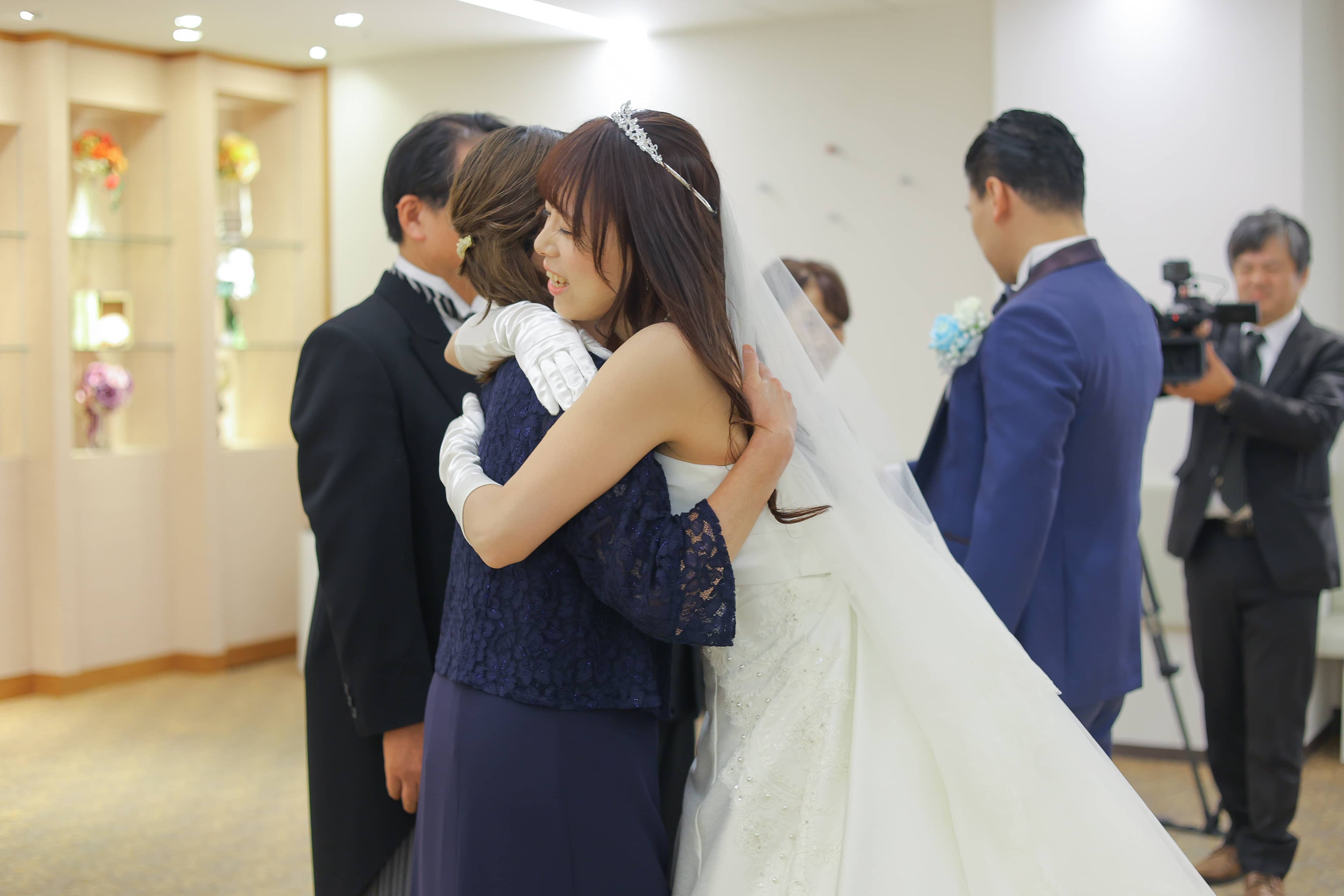 新婦さまはお母さまとあついハグを交わし、これまでの思い出と今日の幸せが胸いっぱいに溢れます。